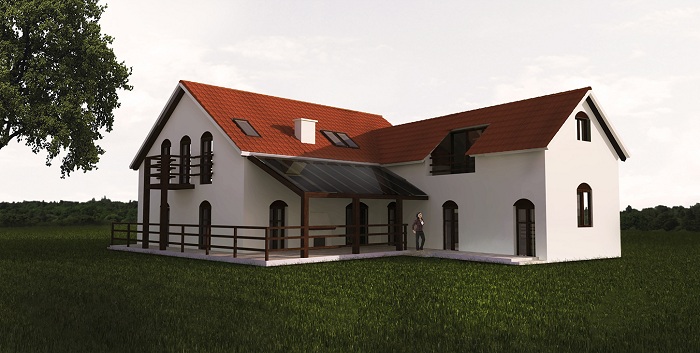 Inwestorzy kupili dom do remontu. Jednak ekspertyza techniczna wykazała, że bardziej niż remontować, opłaci się wyburzyć i zbudować od nowa. I tu pojawiła się mała przeszkoda- stary dom stał częściowo w granicy działki. Jednak nowo budowany dom powinien być umiejscowiony na działce prawidłowo. A na to nie było miejsca na działce, jeśli dom miał nawiązywać bryłą (na rzucie litery „L”) i gabarytami do swego poprzednika. Przygotowałyśmy wniosek o odstępstwo do ministra infrastruktury, i po dwóch miesiącach przyszła zgoda na odtworzenie lokalizacji domu. Można powiedzieć, że powstała nie kopia poprzedniego domu, lecz „wariacja na temat”. Układ funkcjonalno-przestrzenny wewnątrz przeszedł całkowitą rewolucję, tak by dostosować się do wizji domu, gdzie przyjmuje się chętnie gości, smaży konfitury, pekluje mięso i organizuje grilla na tarasie.